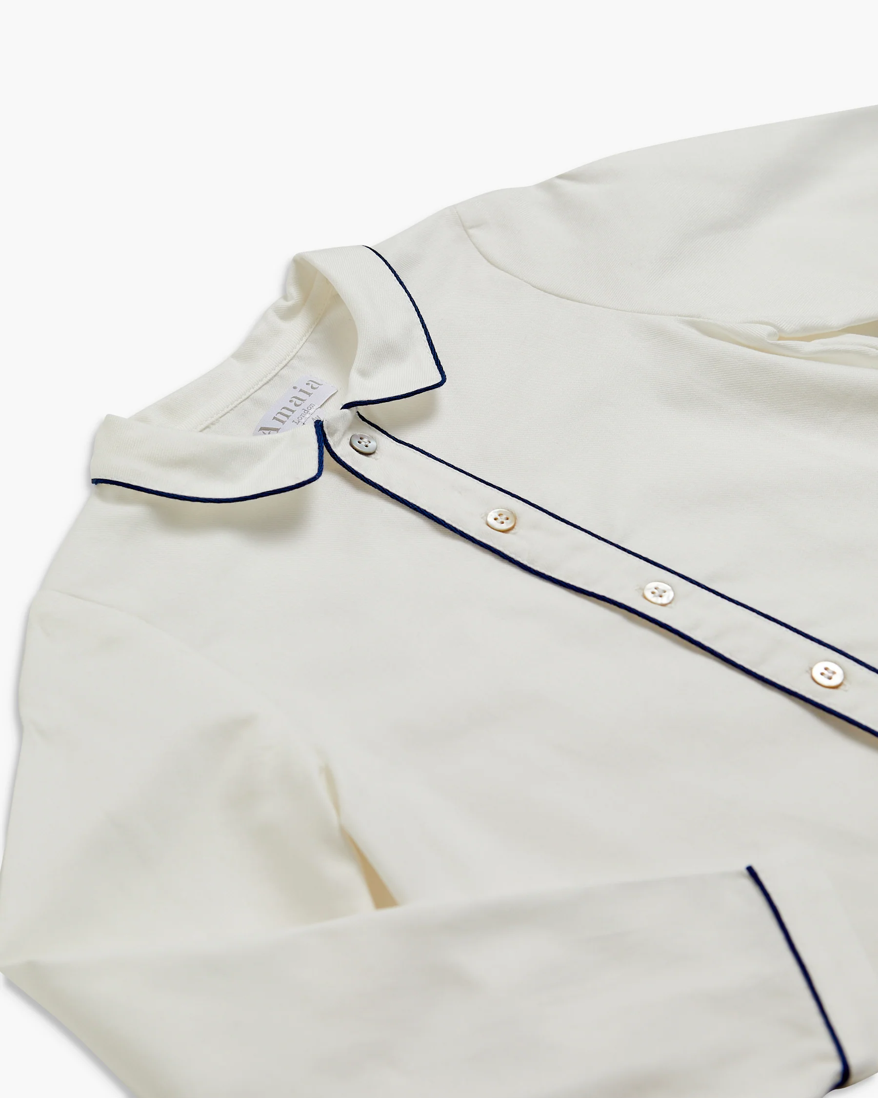 Our iconic Daniel Shirt offers a sleek and stylish look tailored from soft white poplin cotton with contrasting navy piping on the sleeves, collar and placket. Delicate mother-of-pearl button front fastening, adding a special touch to keep your little boy stylish, comfortable and cool throughout the season. Perfectly versatile, it complements effortlessly with shorts, trousers and our classic boy shoes for a polished and refined look. Ideal for any occasion, the Daniel Shirt combines classic charm with modern elegance, ensuring your little one looks effortlessly sophisticated.
