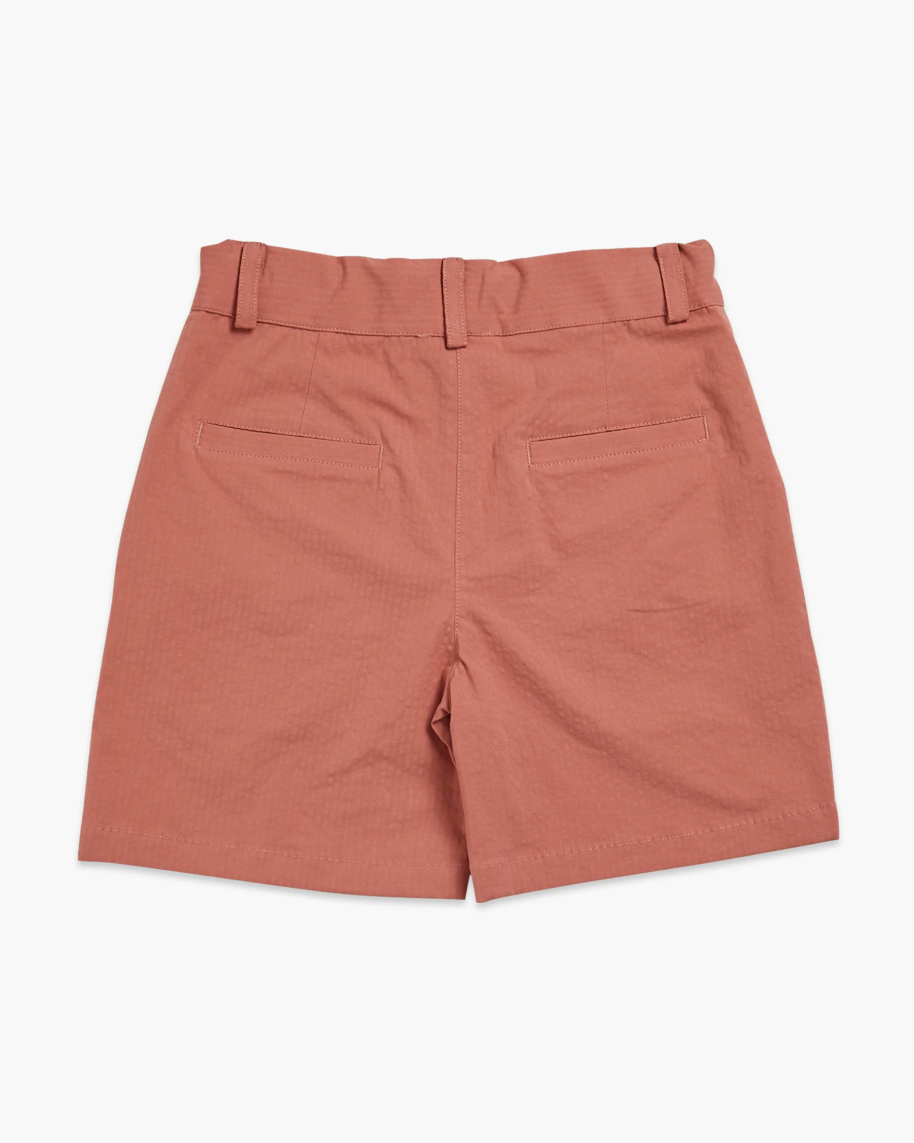 Elevate your son's wardrobe with these exquisite classic brick seersucker boy shorts. Crafted from luxurious, premium quality cotton, this contemporary and timeless piece is a must-have for any occasion. The shorts boast side front pockets, an adjustable waist, a belt loop and a zip and button fastening for added convenience. For a refined and classic look, pair them with our top-selling boy shirts and knee-high ribbed socks. Available in a range of stunning colors.