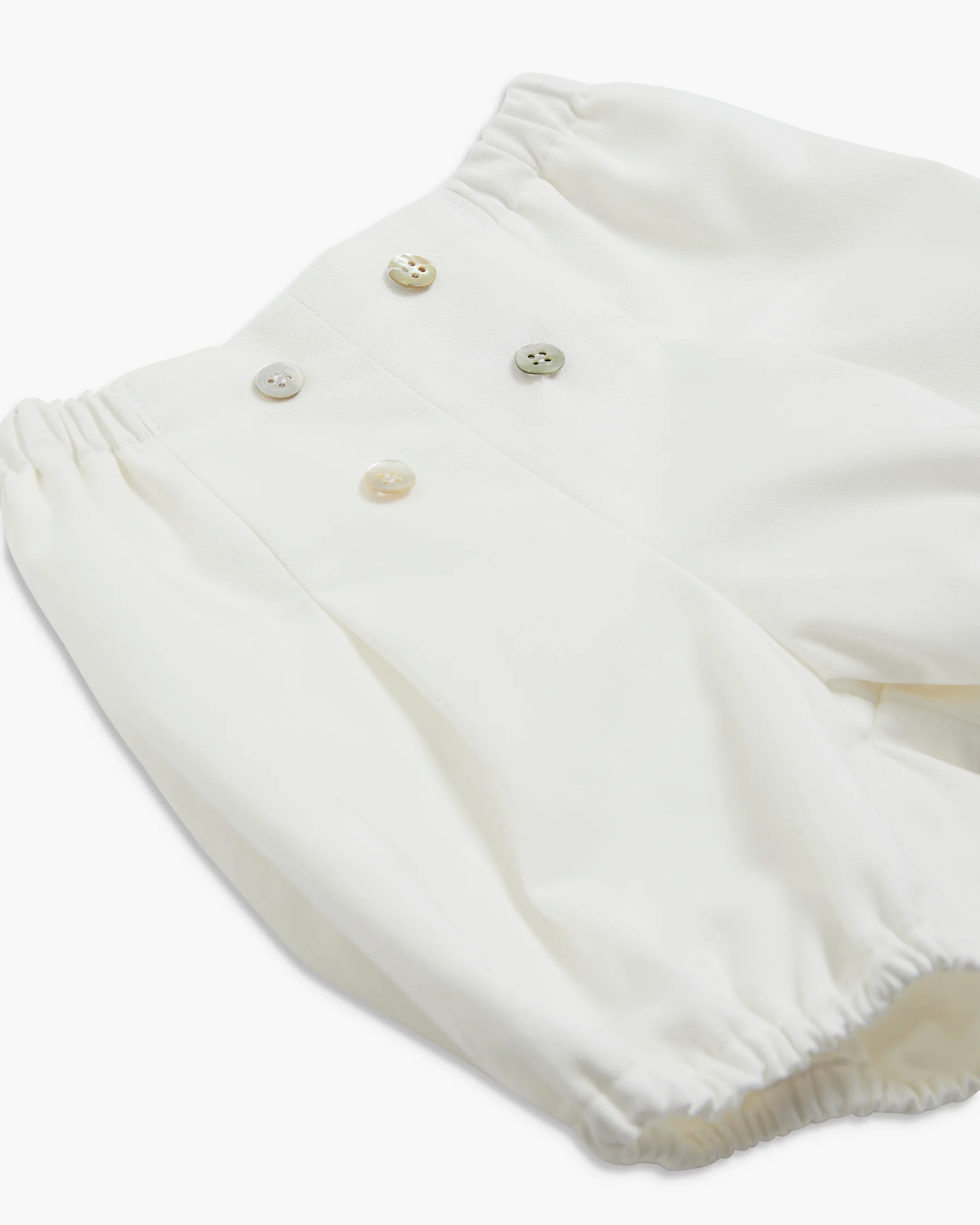 These White Magpie Baby Bloomers are a timeless essential for your little one’s wardrobe. Designed with a clean, classic silhouette, they offer the perfect blend of comfort and style for any occasion. Made from soft, breathable fabric, they keep your child comfortable during playtime, outings or special events. The elasticized leg openings create the signature bloomer shape while ensuring a snug, gentle fit that stays in place all day. Side pockets add a practical touch, while the flat front waistband creates a neat, polished look—ideal for pairing with our tops and shirts. Versatile and easy to style - must-have foundation piece for warm-weather dressing.